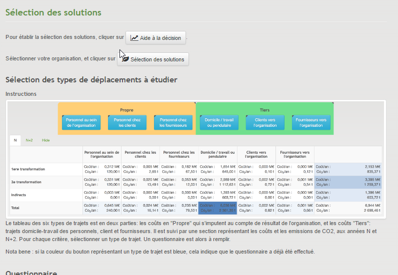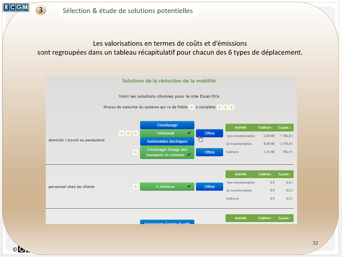 - Un système permettant des simulations d'actions de réduction des coûts de mobilité